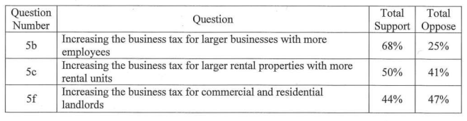 Another factor to consider is public sentiment. Polling conducted earlier this year showed that likely voters overwhelmingly supported upping the business tax for larger businesses. But fewer than half supported the idea of a tax increase on landlords.