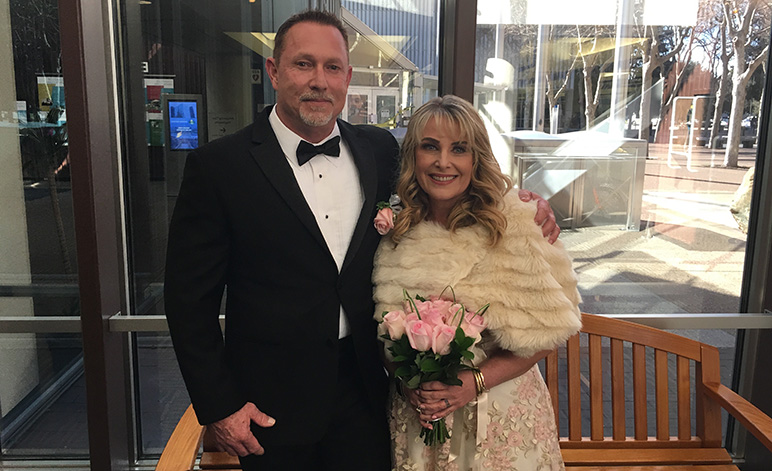 - Carla and Renan Modesto, who hail from Sunnyvale, said they tied the knot on Valentine’s Day because the Monday before was already booked. “She’s lovely,” Renan says. “She has a heart as big as her. … I can’t stop thinking about her.” (Photo by Vinny Maxwell)