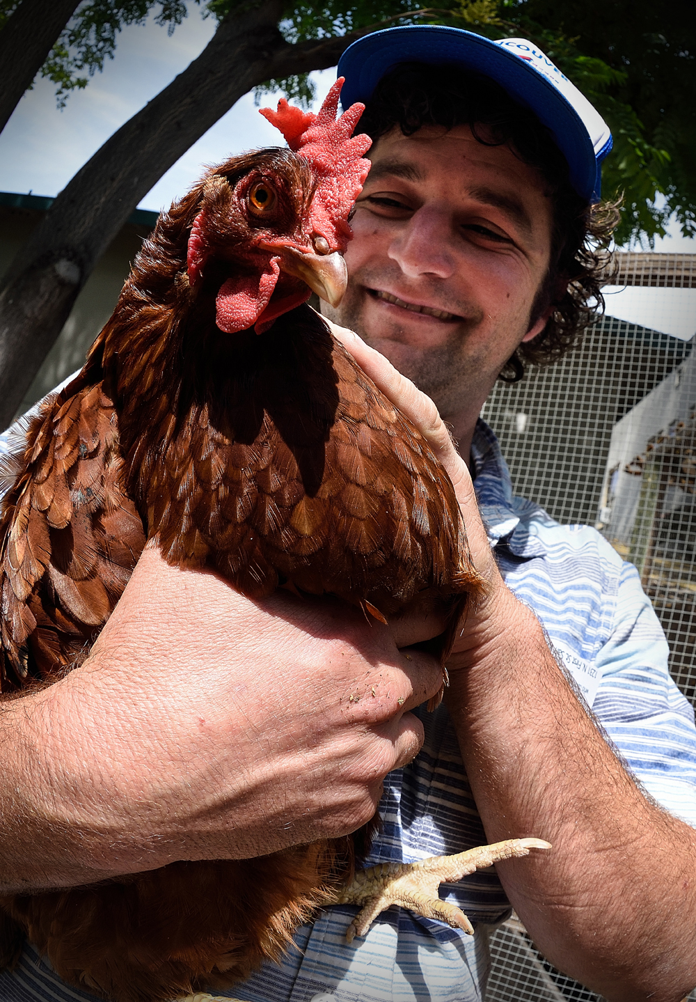 - Alan Hackler and his Rhode Island red. (Photo by Greg Ramar)