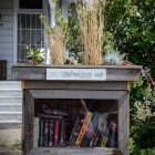- A little library stationed outside Alan Hackler’s garden on East St. John Street in San Jose. (Photo by Greg Ramar)