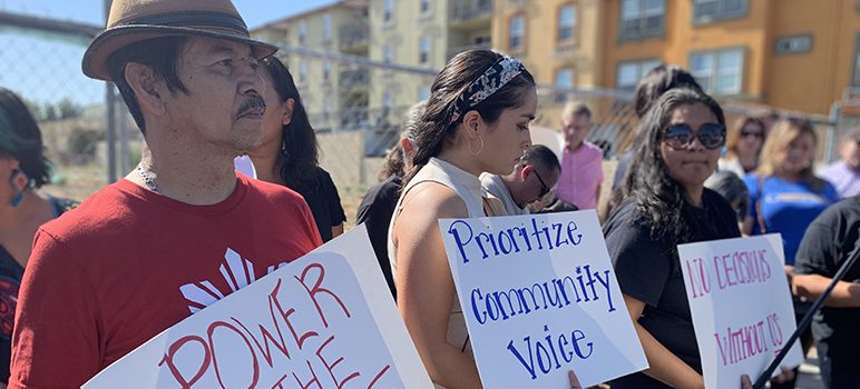 The empty plot of dirt where the group convened—1936 Alum Rock Ave., a fenced-off swath of gravel with blockish townhomes on one side and drab low-slung buildings on the other—marked a case in point for the rally.