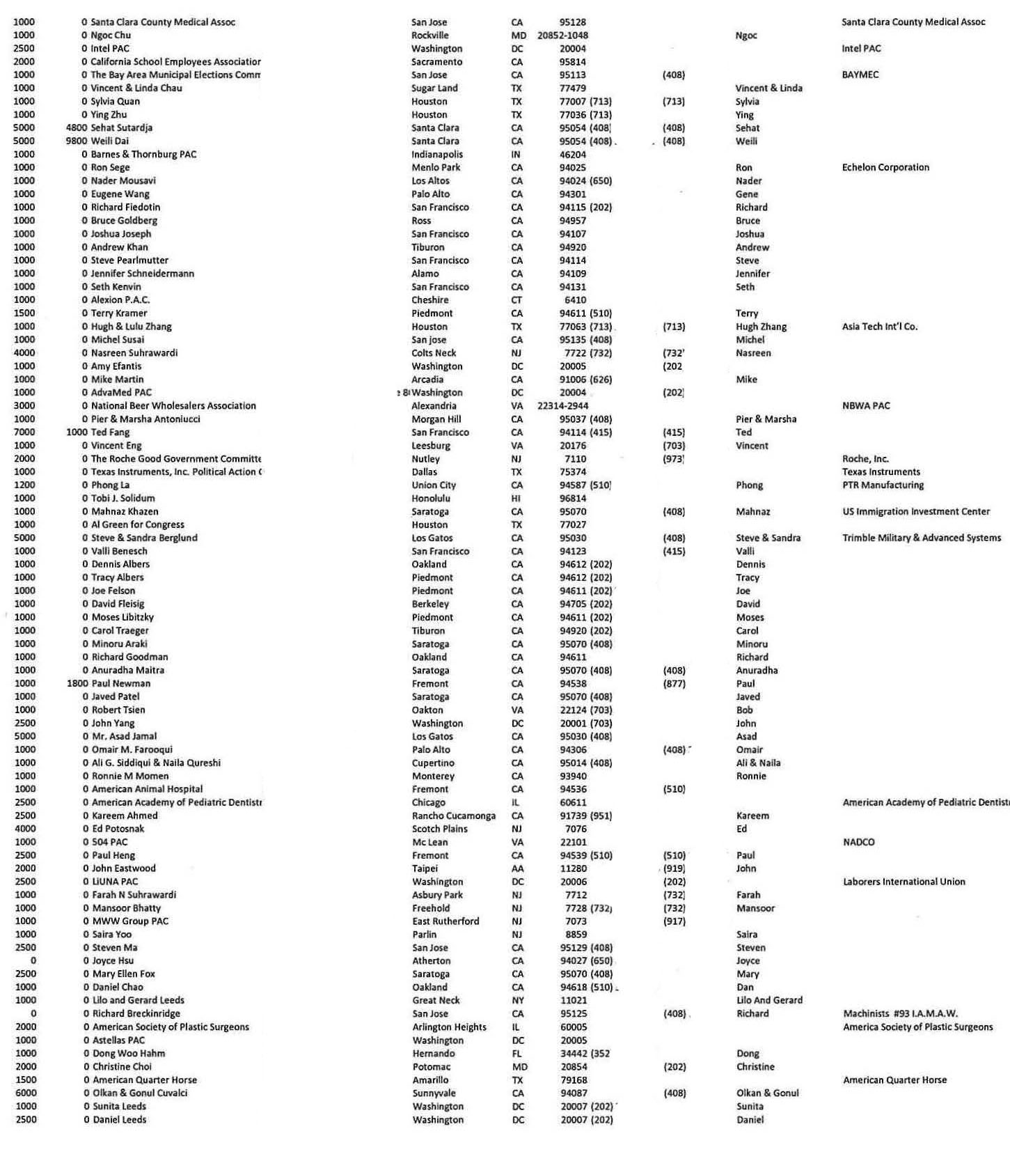 I just love it when you want to call out Honda’s Donors but nothing about Ro Khanna. It proves you’re on the list of Ro supporters. Yes I believe in the Clean Money Act and it should be passed. If you are going to call out one candidate, be fair and report on his opponent .
