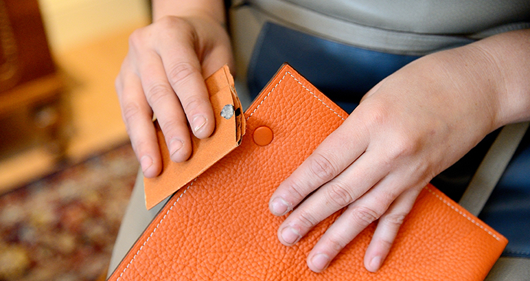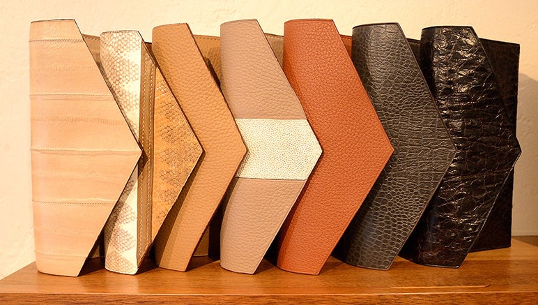 - Handmade leather clutches by EM Parker. (Photo by Greg Ramar)