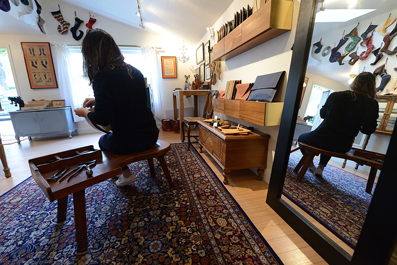 There’s something poetic, romantic about working with one’s hands to turn leather into shoes or a bag or another good that people will use, she adds.