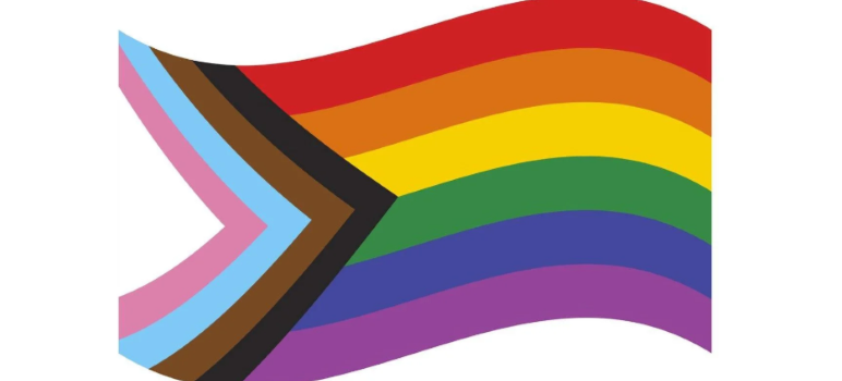 The Progress Pride Flag,, adds a chevron on one side of the classic rainbow Pride Flag, to celebrate transgender people, people who died of AIDS and (with a brown stripe) people of color.