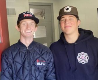 YOUNG FIREFIGHTERS – Connor Scarborough (left) and Asher Schwarzbach, at the Ben Lomond Fire Protection District. (Drew Penner / Press Banner)