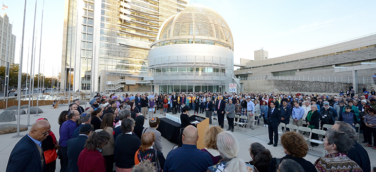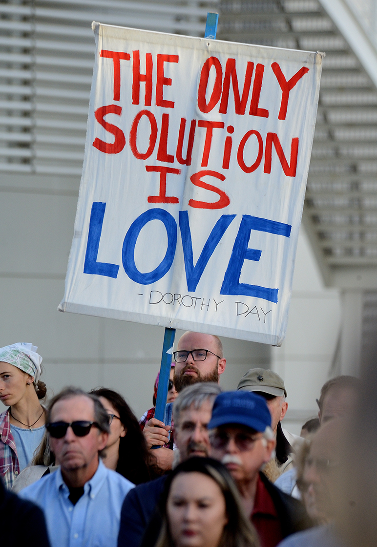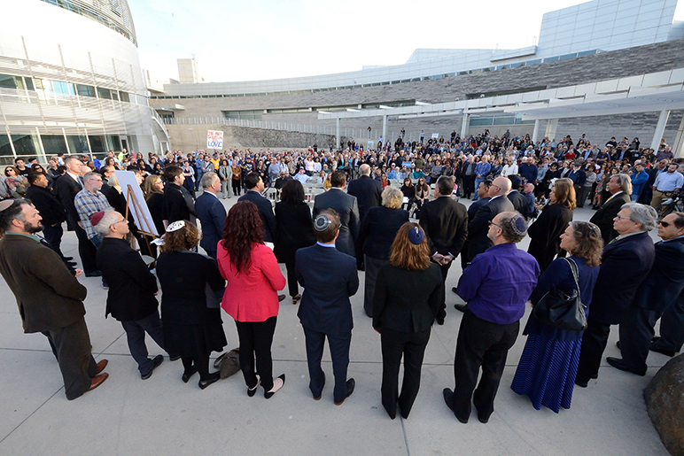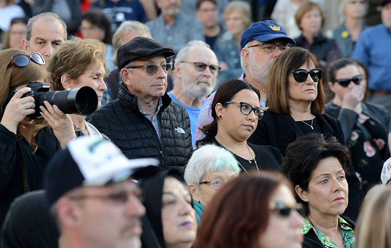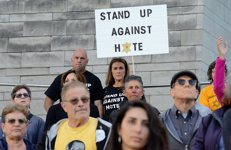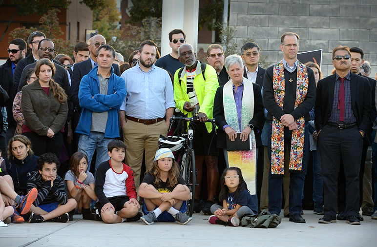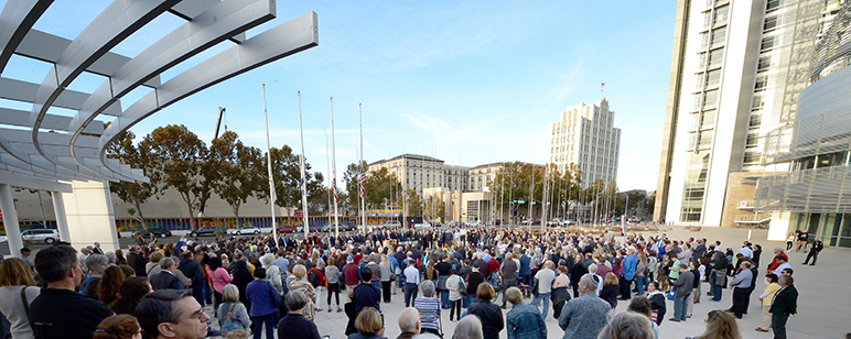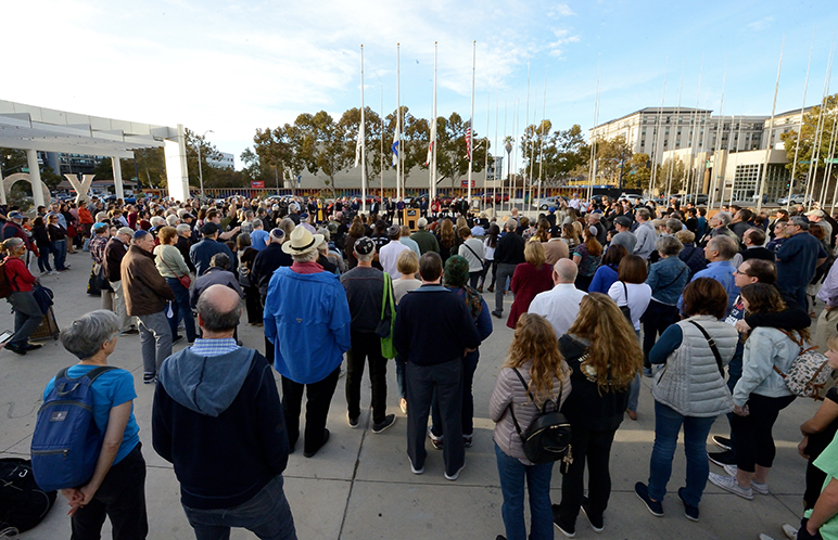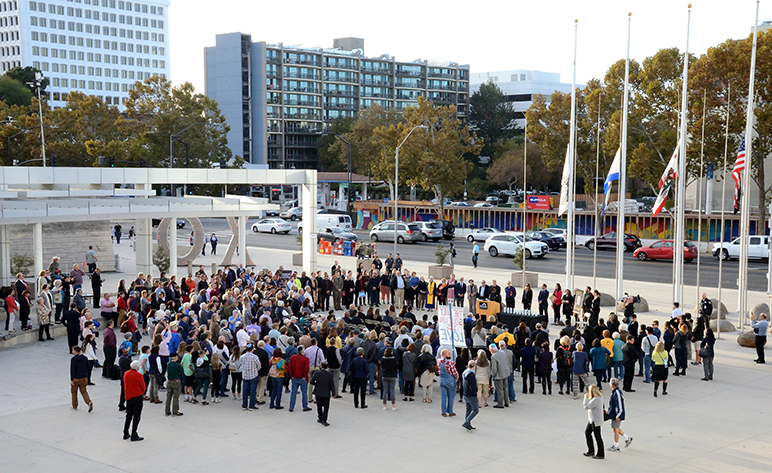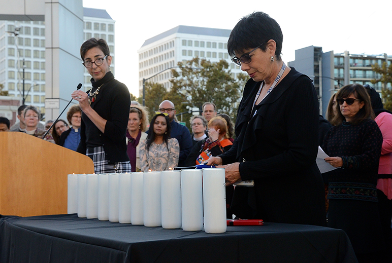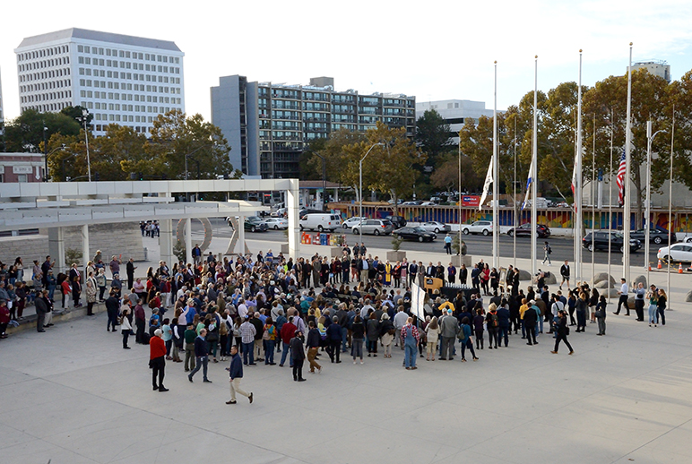 Hundreds of people gathered outside San Jose City Hall on Tuesday for an interfaith vigil honoring the 11 victims of the Tree of Life Synagogue massacre in Pittsburgh, Penn.
