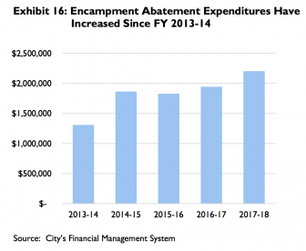 “For example,” Erickson’s report explains, “the city’s agreement with one grantee requires the grantee to provide outreach services to homeless individuals in San Jose to connect them with resources and services but does not require any reporting by location of encampment or results of those outreach contacts. Without this information, it is difficult to determine the overall extent of outreach performed in conjunction with an abatement action. It makes it equally difficult to track the effectiveness of abatement actions. Specifically, whether homeless residents were helped into housing, or whether the abatement action simply forced the problem to a different part of the city.”