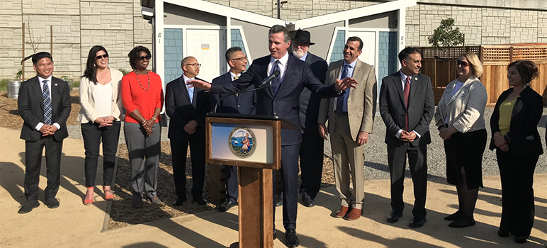 Now: I’m joined by @CAgovernor Gavin Newsom & elected officials to launch San José’s first Bridge Housing Community. This “tiny home” community provides interim housing w/ services for employment & housing searches—acting as a bridge between homelessness & permanent housing. https://t.co/FI7Bv5QV34