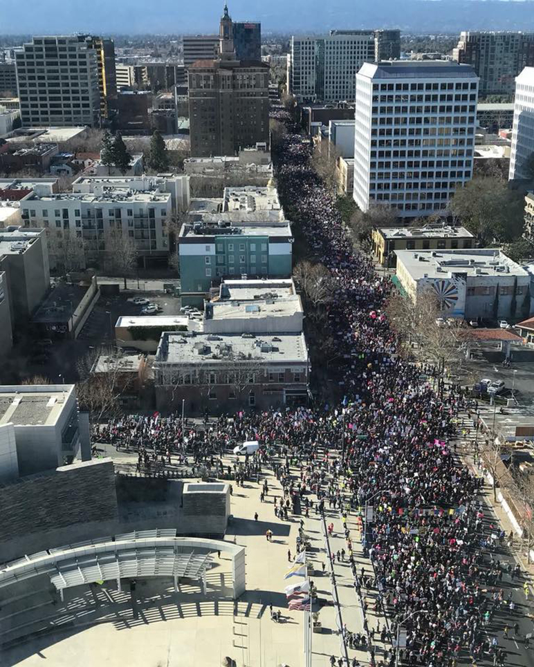 - An estimated 20,000 people marched through downtown San Jose for the second annual Women’s March.