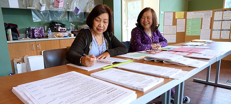 Election officers perform a variety of duties, including checking in voters, providing and collecting the ballots and making sure it gets returned to the ROV office to tally. The officers ensure that voters have a safe place to cast their ballot and help accommodate people with disabilities or who speak languages other than English.