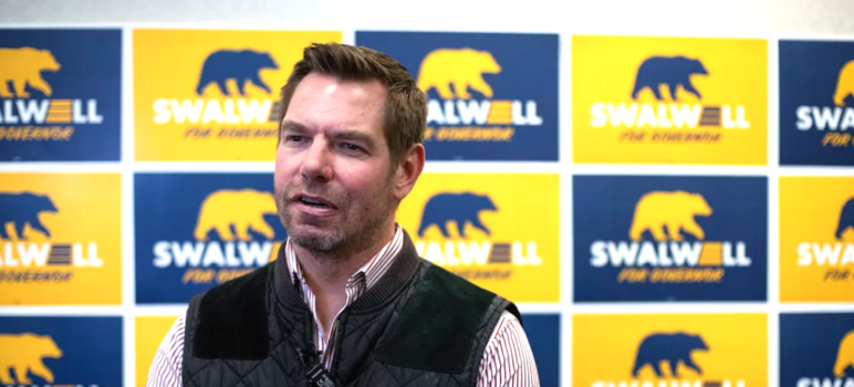 Swalwell ran primarily on his antagonism toward President Donald Trump, telling voters that fighting Trump is the California governor’s “number one job.”