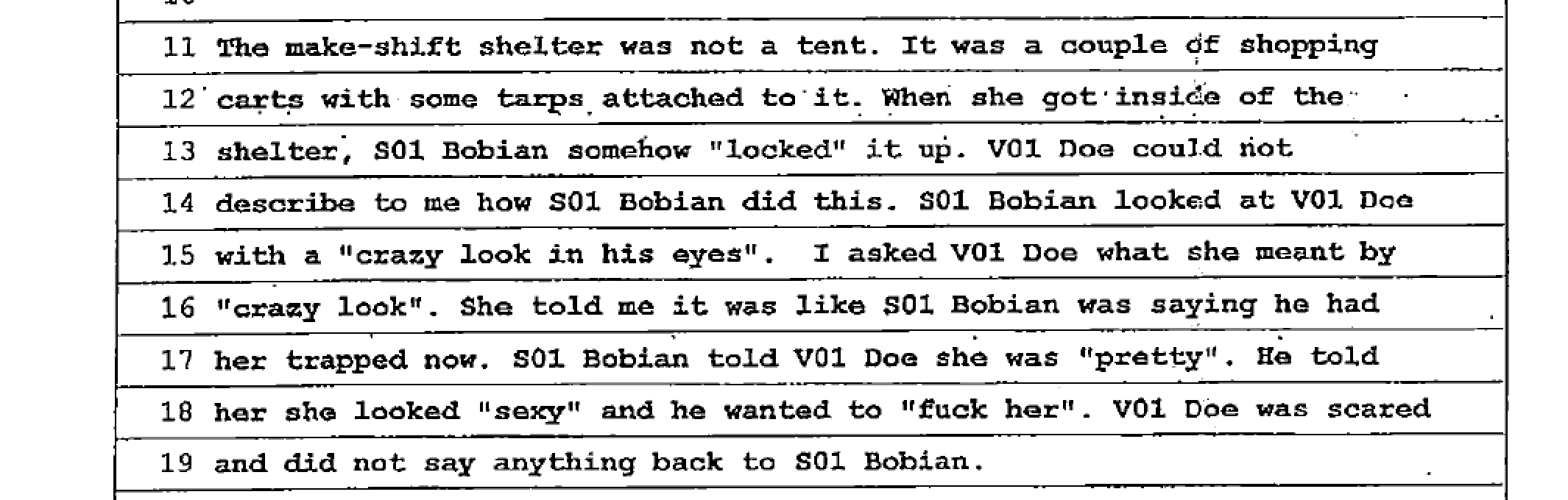 Another week passed. The DA’s office circled back with René. Prosecutors summoned her once more to the substation for close to four hours of questioning. René says they asked why she went to Bobian’s tent alone, why she didn’t resist, verbally object or leave when he expressed sexual thoughts and how he could “lock” her inside a shelter with no door.