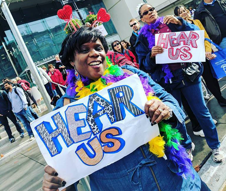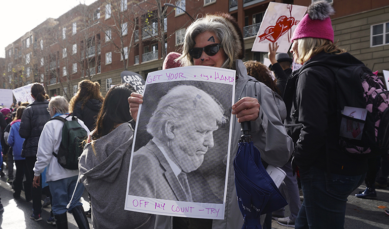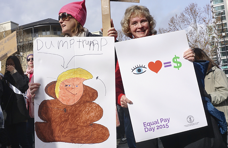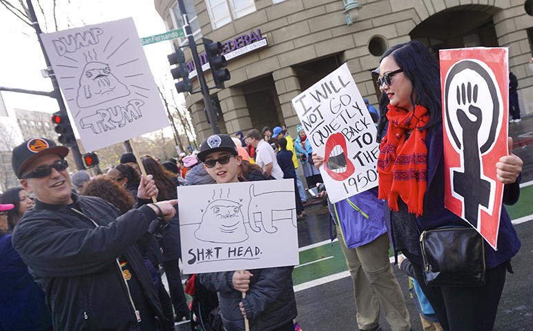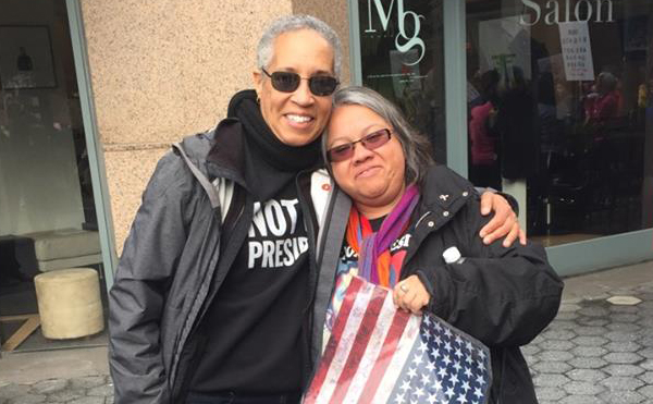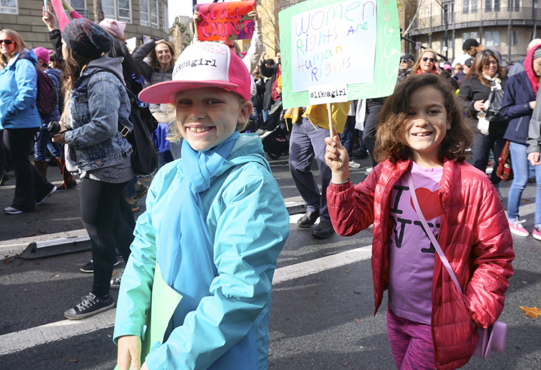 - Retired Judge LaDoris Cordell (left) on what brought her to the march: “I’m about the business that John L. Lewis, the congressman from Georgia talked about when he did his civil rights work. He said it is our responsibility to make necessary trouble. This is our start, day one, of necessary trouble for the Trump regime. I hope that this continues for the next four years, and I hope that will be the end of it. But it’s clear to me that democracy is not a spectator sport—it is participatory and it’s important that we not be complacent.”