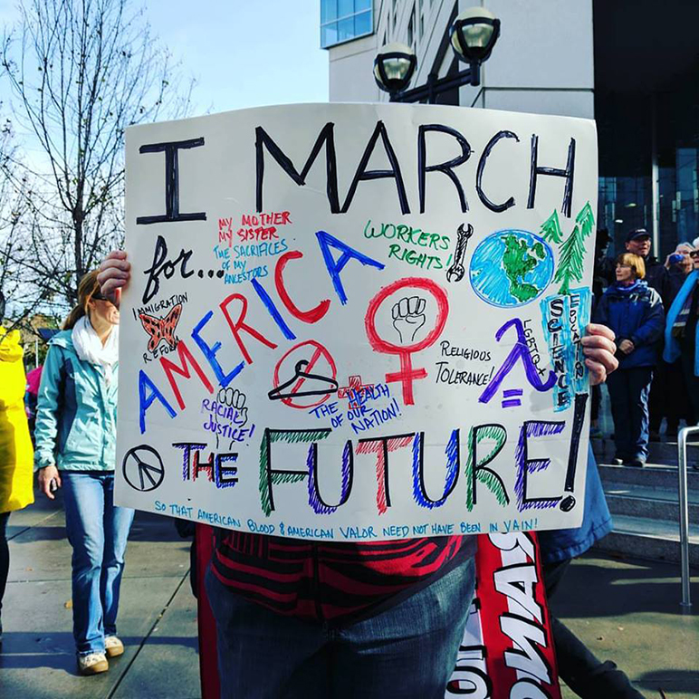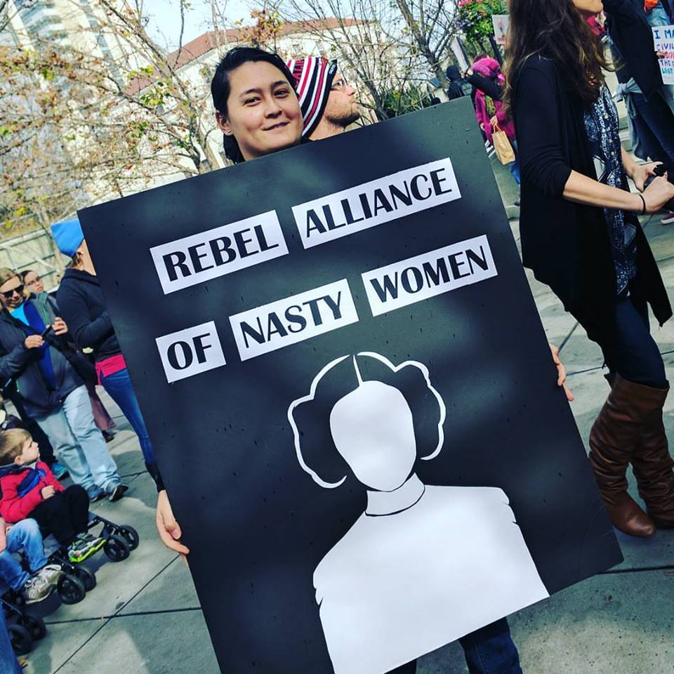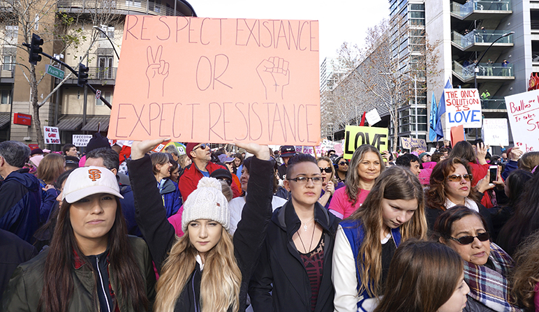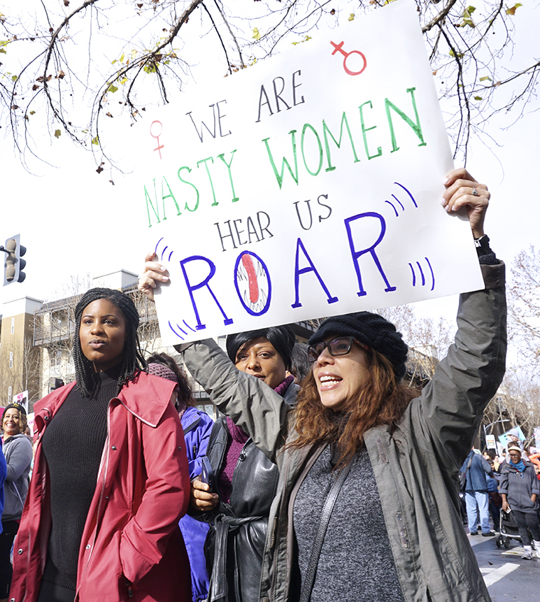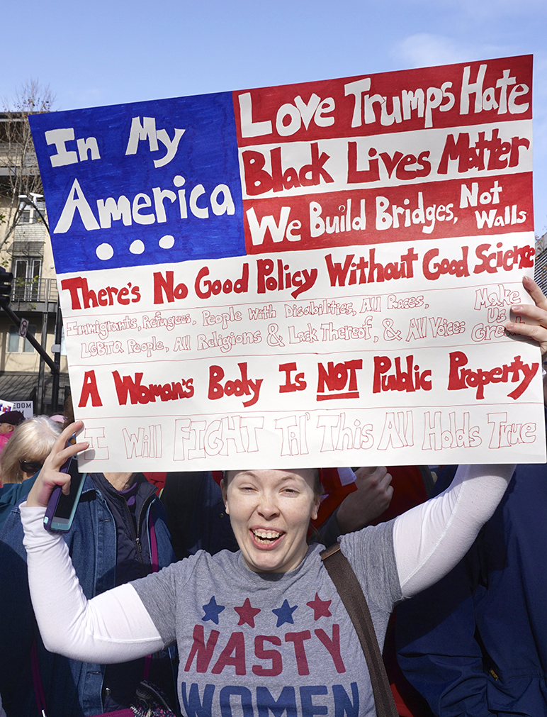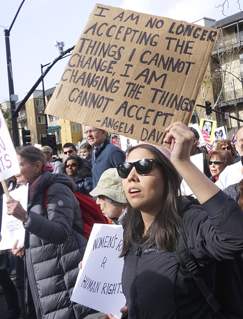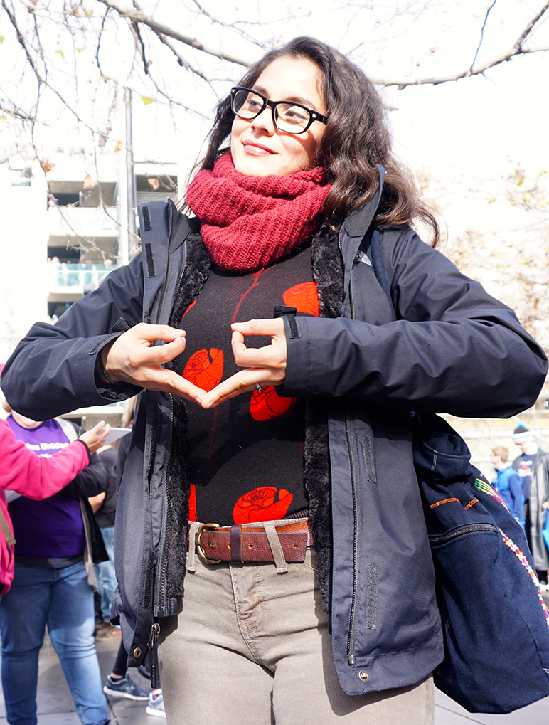 - Lifelong San Jose resident Cynthia Montiel throws up what another protester described as the “ovary gang sign” in solidarity with other women. “I marched for all the women and girls who do not have a voice, yet alone, access to healthcare services,” she says. “For all the women in rural areas that lack knowledge of the importance of health screenings simply because their government does not provide them with such services. This march is representation of how women, children and men can uprise harmoniously, yet loud enough, to fight for the women’s rights, human rights.”