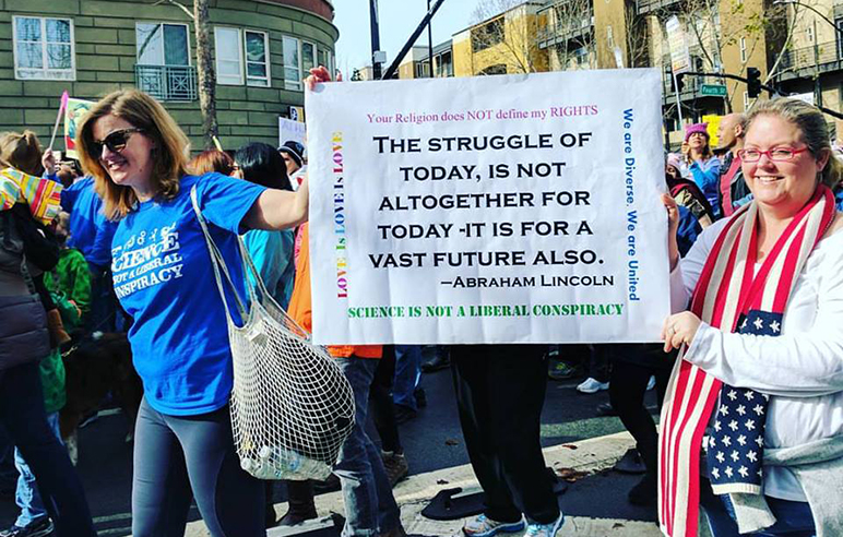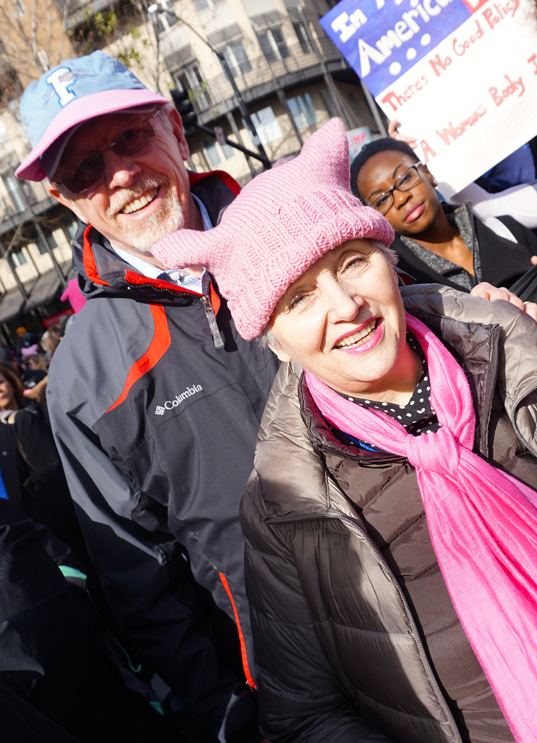 - Ron and Barbara Hansen have devoted a lifetime to community service and advocating for civil rights. They managed to divide up their day between the Women’s March and a community forum on police accountability. “My reason for attending was to show support for the women in my life,” says Ron, “as well as for all of my neighbors who are afraid based on the rhetoric and proposed policies of the Trump administration and the GOP-led Congress.” Says Barbara: “I marched because I am afraid and the only way to fight my fear is to stand with others.”