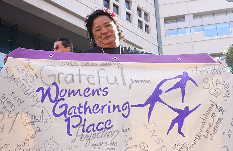 - Susanna Beouchan, a local homeless resident, says she marched for Route22, a local nonprofit that supports homeless women.