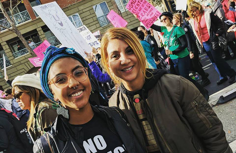 - “I’m here to support women’s rights, #BlackLivesMatter and just to be present,” says Jasmine Pursley, an Oakland resident marching with her mom, Michele Cabania.
