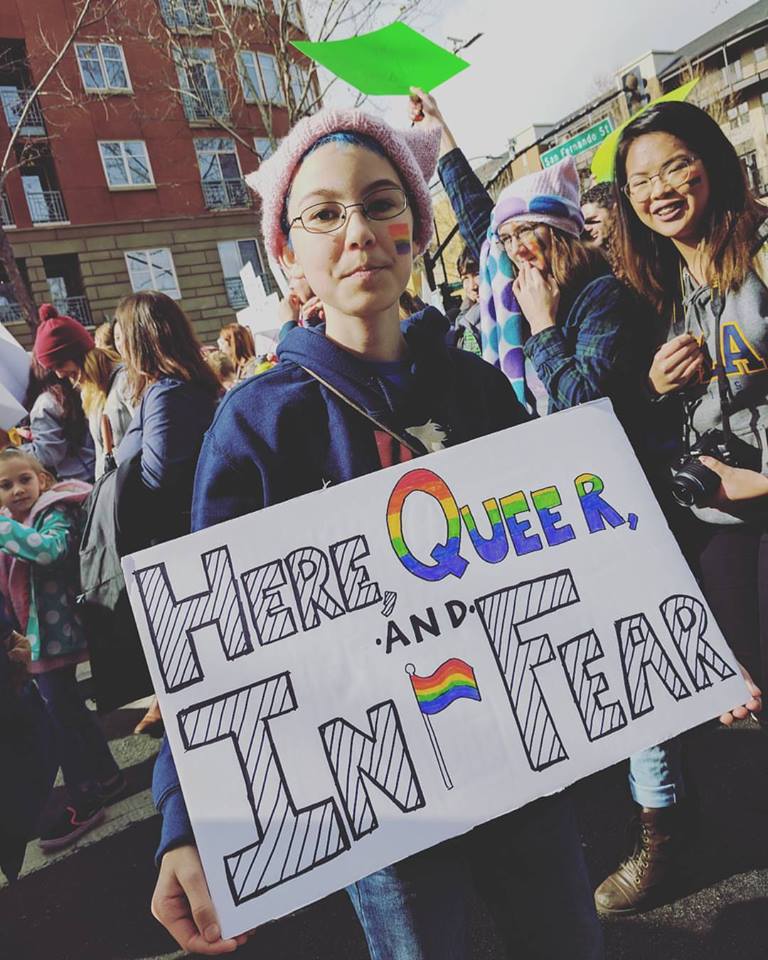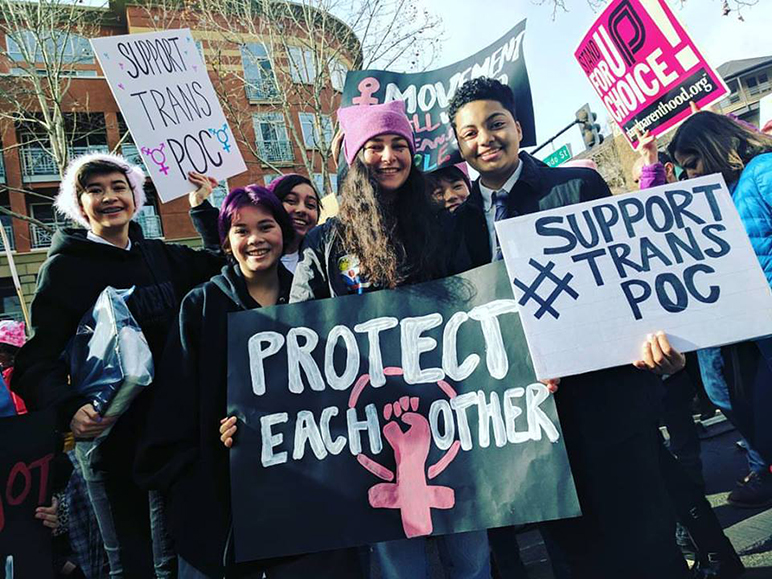 - “We are ppl of color with various gender identities and we deserve to be protected,” says Amy Mullenex, who marched with classmates from Notre Dame High School. “Si se puede,” Jasmine Canjura adds.