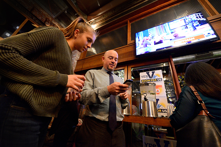 With an hour to go before the polls closed, Marc Landgraf, external affairs manager for the Santa Clara Valley Open Space Authority, sidled up to the indoor bar and toasted the pending victory of Measure T with a pint of Dos Equis (complimentary for all patrons sporting an “I voted” sticker).