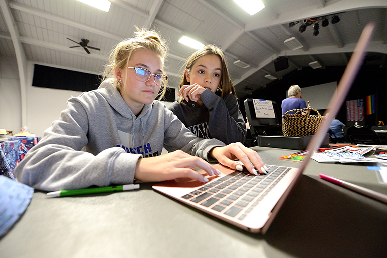 - Volunteers keep a close eye on returns at the OCI watch party Tuesday. (Photo by Greg Ramar)