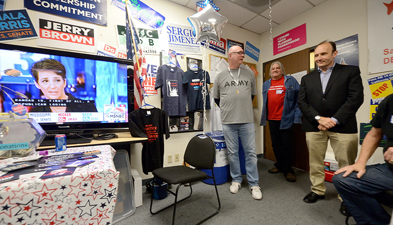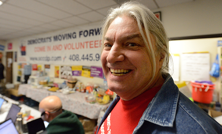 - Rich Binell at the Dem headquarters in San Jose. (Photo by Greg Ramar)